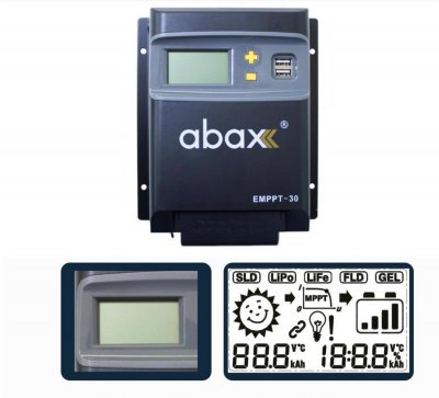 Abax EMPPT30 2A''''lik Çift USB Çıkışlı 12V - 24VDC MPPT 30A Geniş LCD